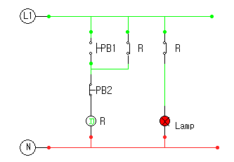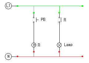 푸쉬버튼을 누르면 램프가 점등되는 회로를 표현해봤습니다.
