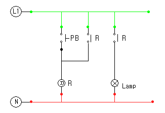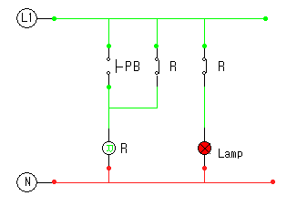 푸쉬버튼으로도 전기가 흐르고, 릴레이 접점으로도 전기가 흐르게 됩니다.
