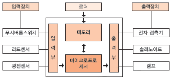 안녕하세요, 텍이 입니다! PLC #5 오늘은 PLC의 구조에 대해서 간략히 알아보겠습니다. 편의상 문체는 평어체로 하도록 하겠습니다. PLC는 마이크로프로세서(microprocessor) 및 메모리로 구성되어 인간의 두뇌 역할을 하는 중앙처리장치(CPU), 외부 기기와의 신호를 연결시켜 주는 입·출력부, 각부에 전원을 공급하는 전원부, PLC내의 메모리에 프로그램을 기록하는 주변장치로 구성되어 있다. 1. PLC의 구조 2. CPU 메모리 IC 메모리 종류에는 ROM과 RAM이 있다. (1) ROM은 읽기 전용으로, 메모리 내용을 변경할 수 없다. 따라서 고정된정보를 써넣으며, 정보는 전원이 끊어져도 기억 내용이 보존되는 비휘발성 메모리이다. (2) RAM은 메모리에 정보를 수시로 읽고 쓰기가 가능하여..